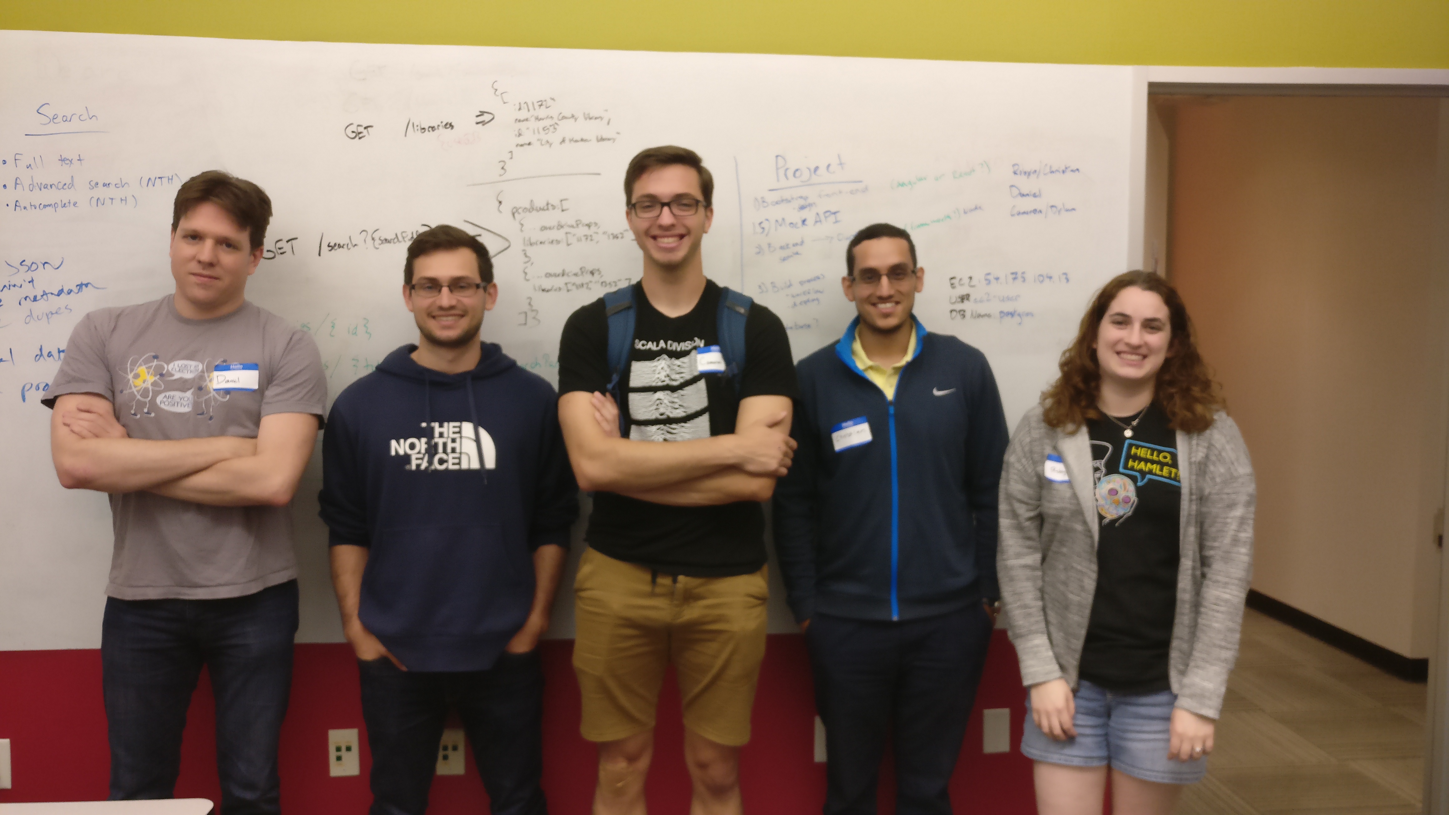 At this stage, we re-convened with the rest of the team. They had been busy building out the actual app using Express.js for a simple API server and React.js for client side rendering. After a bit of deliberation, we decided to just rely on Postgres's full-text search to power our searching functionality. Once we were happy with the results that were coming back from our test queries, we tied everything together by translating query params into a valid Postgres query. We used http://bookshelfjs.org/ as a ORM. It was a little bit of a pain to get our complicated queries working, but using the ORM turned out to be the right decision because it abstracted away some querying on related tables that would have been painful to implement ourselves, given our time constraints.